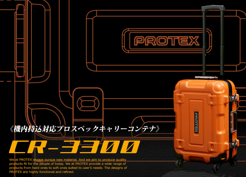 PROTEX(プロテックス)はパーソナルに特化した、あらゆるプロフェッショナルのキャリーニーズに応えるブランド。 スーツケース・キャリーコンテナ・アタッシュなど、ビジネスに始まりトラベル・ダイビング・モータースポーツにいたるまで、プロフェッショナルの傍らには、常にPROTEXがいる。